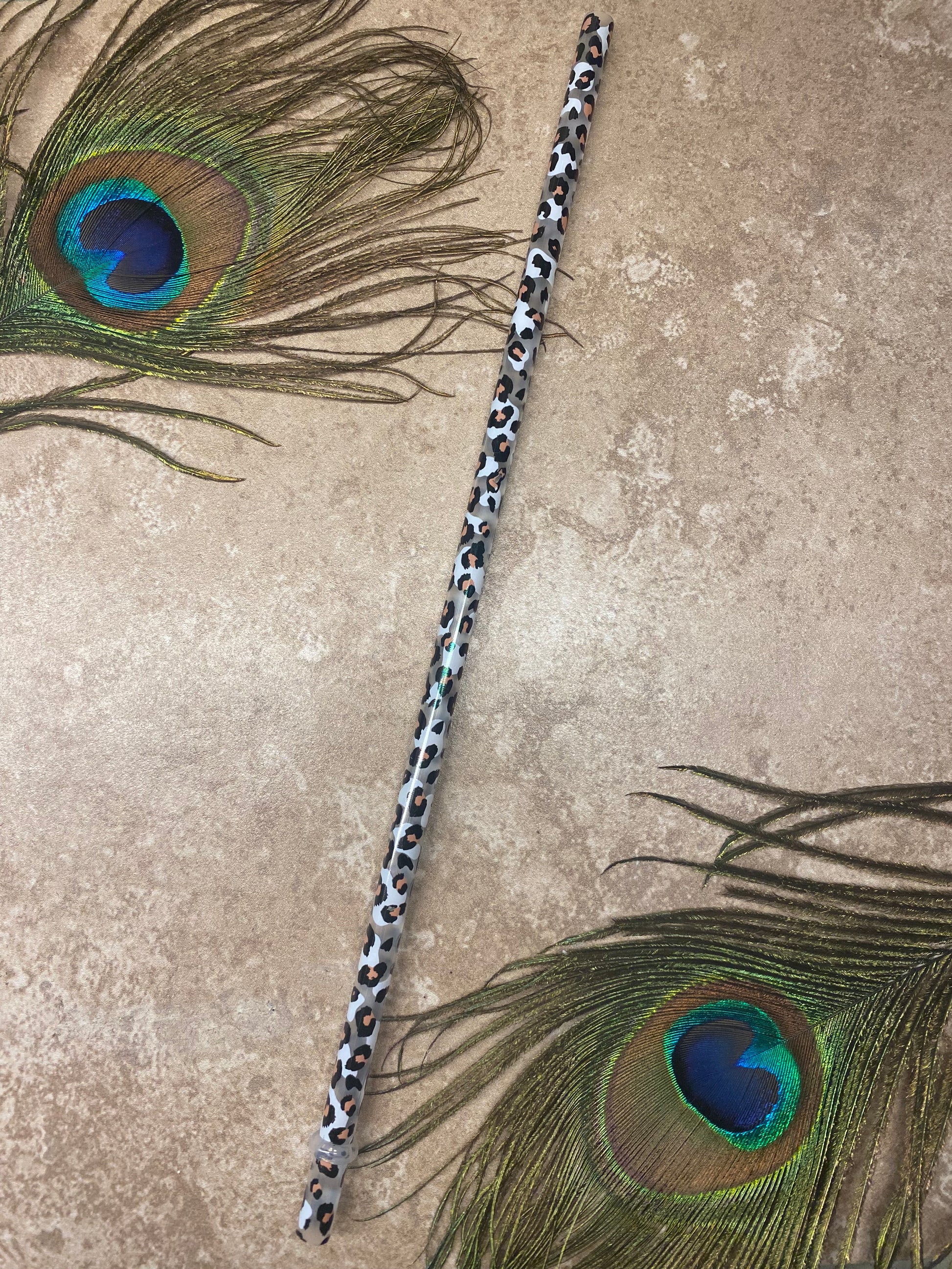 11" Brown and White Leopard Straw